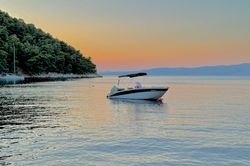 Motorbåten 2012 Blumax 550 - 12 är lämpad för 6 personer. Den ligger förtöjd i Hvar Port, Kroatien.