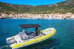 Motorbåten 2009 BSC 75 - 09 är lämpad för 8 personer. Den ligger förtöjd i Marina Vis, Kroatien.