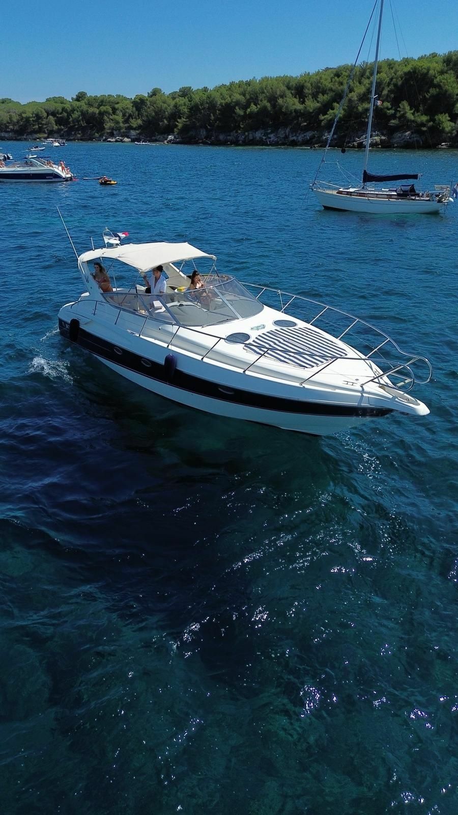Att kryssa runt med denna motorbåt är väldigt roligt, då den är utrustad med en högtalare i sittbrunnen och ett ljudsystem.