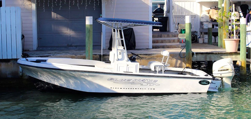 Motorbåten 2021 Dusky 21 - Dusky 1 är lämpad för 8 personer. Den ligger förtöjd i Harbour view marina, Bahamas.