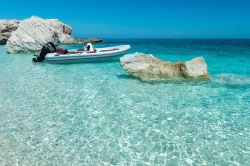 Motorbåten 2013 Joker 26 - 13 är lämpad för 12 personer. Den ligger förtöjd i Porto di Cala Gonone, Italien.