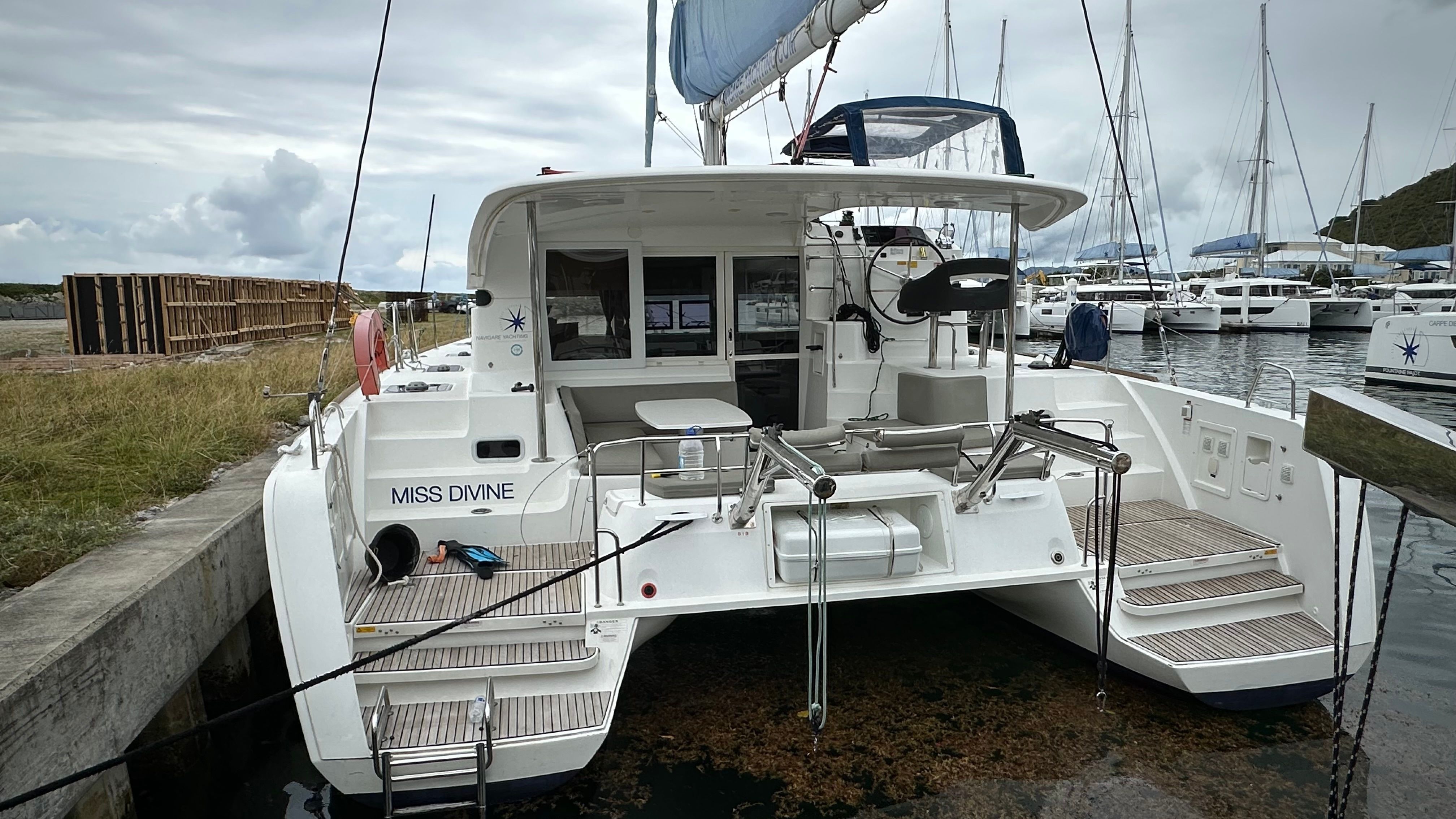 Katamaran Lagoon 40 - Miss Divine, är byggd 2020, har 6-hytts och ligger förtöjd i Nanny Cay Resort & Marina, Västindien.