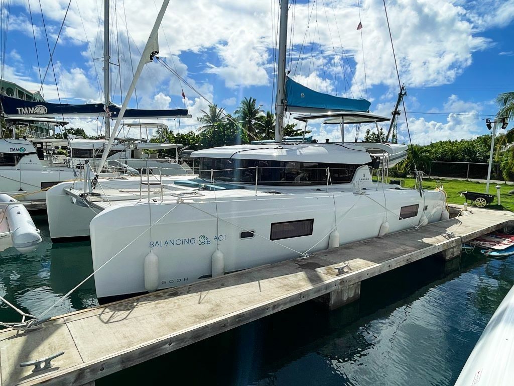 Katamaran Lagoon 42 - Balancing Act, är byggd 2024, har 5-hytts och ligger förtöjd i Marina Tortola, Västindien.