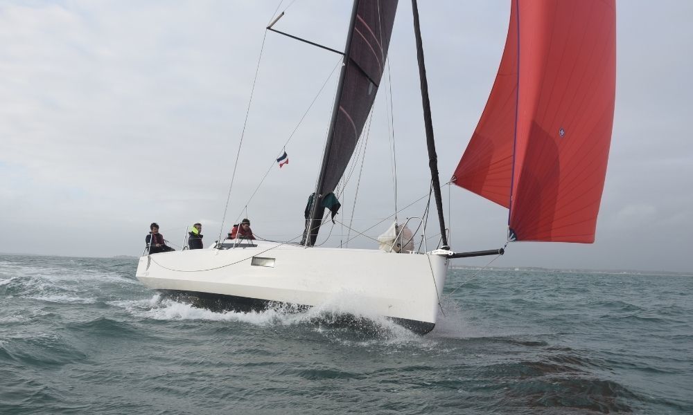 Segelbåt Pogo 30 - Ithaka, är byggd 2020, har 2-hytter och ligger förtöjd i Port de la Trinite sur mer, Frankrike.