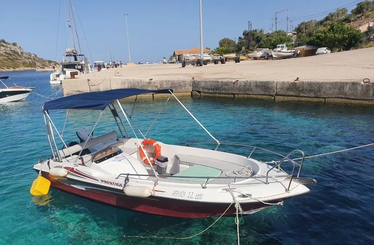 Motorbåten 2023 Poseidon Ranieri Soverato - Afros 1 är lämpad för 7 personer. Den ligger förtöjd i Limni Keri Harbour, Grekland.