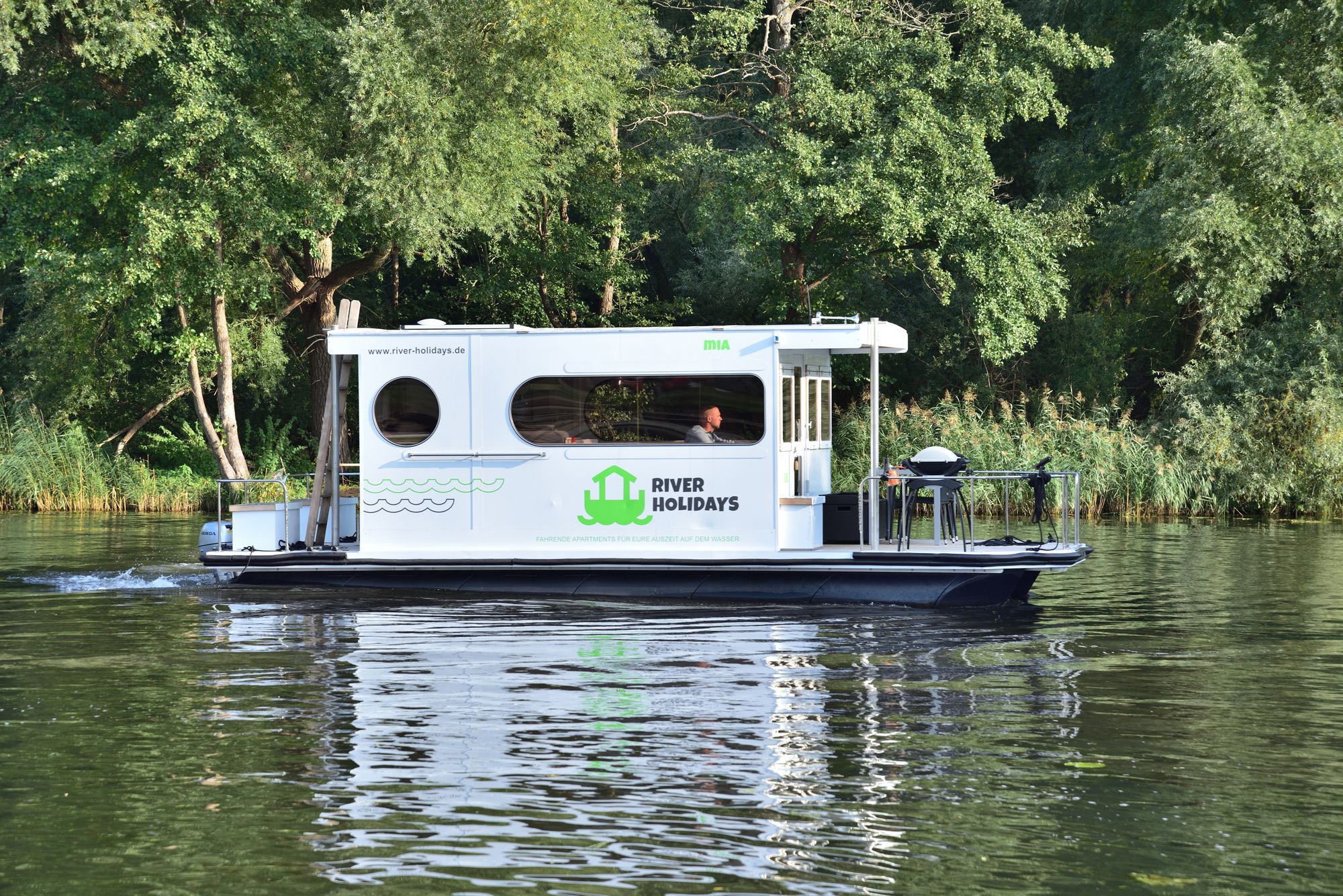 Denna husbåt är utrustad med solpaneler, grill och en badbrygga. Vid kyligt väder kommer gästerna att dra nytta av uppvärmning. Platt-TV, ett ljudsystem och inomhus högtalare finns också tillgängliga.
