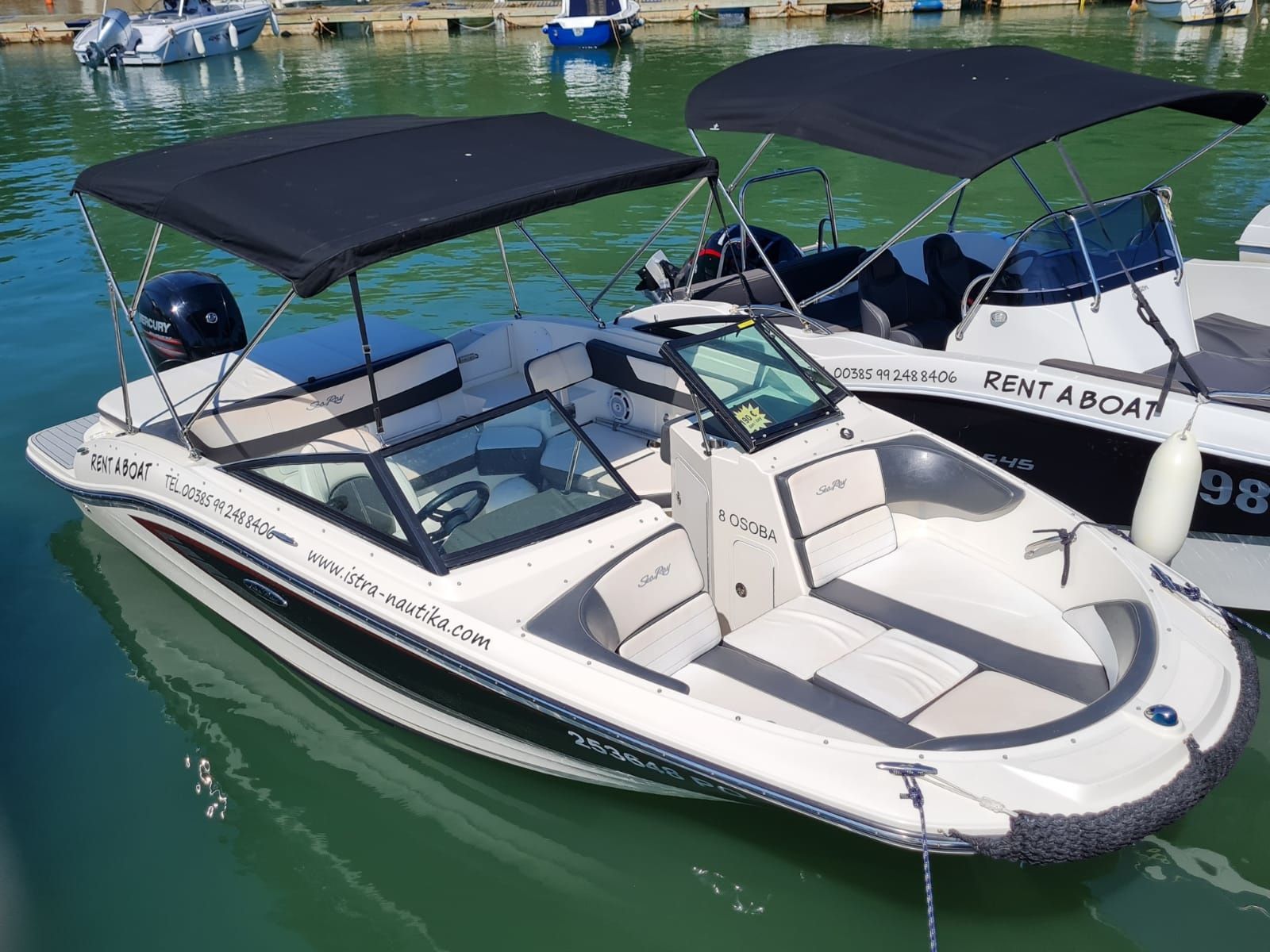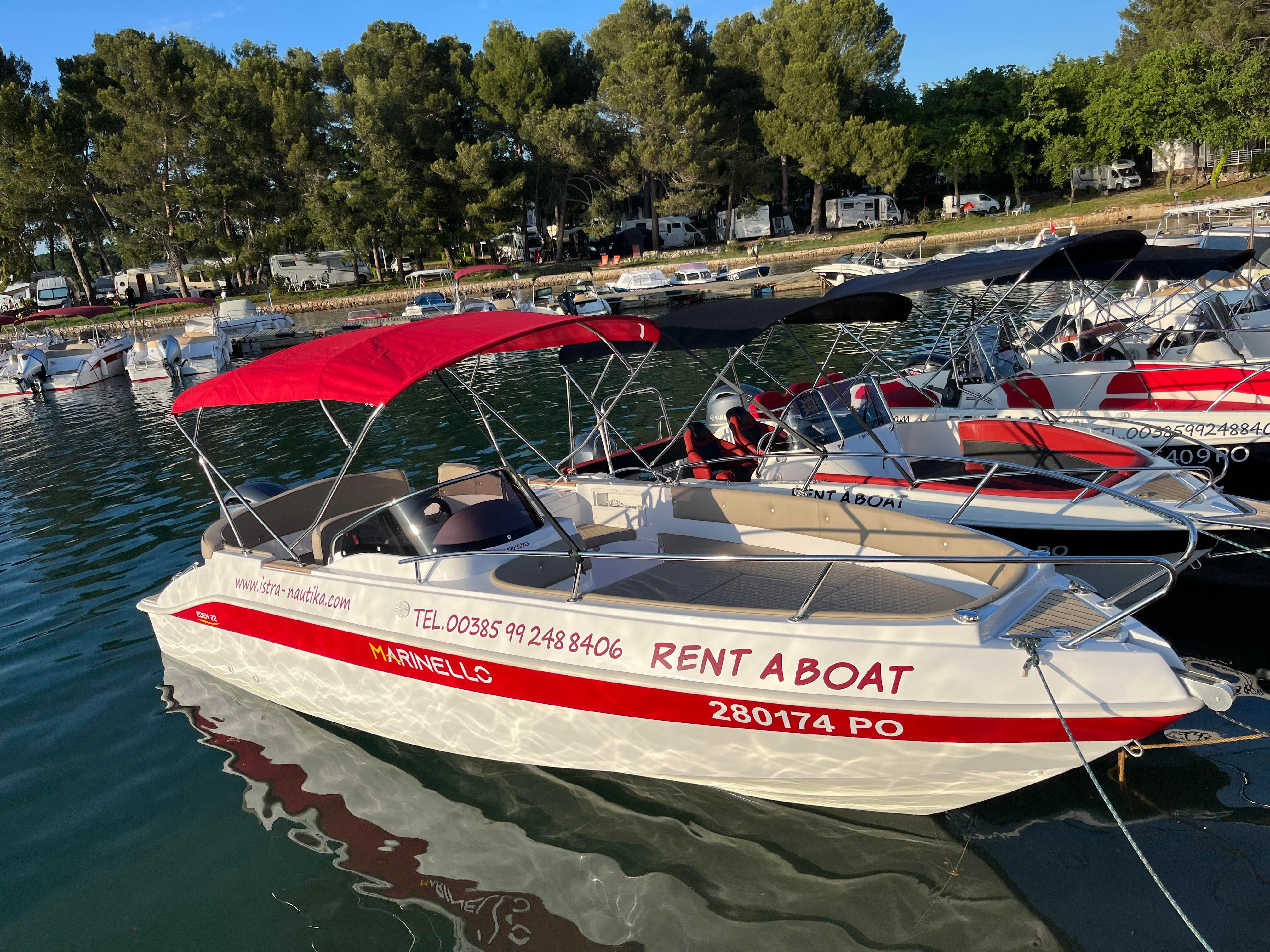 Motorbåten 2020 Salmeri 21 - Calypso är lämpad för 8 personer. Den ligger förtöjd i Marina Poreč, Kroatien.