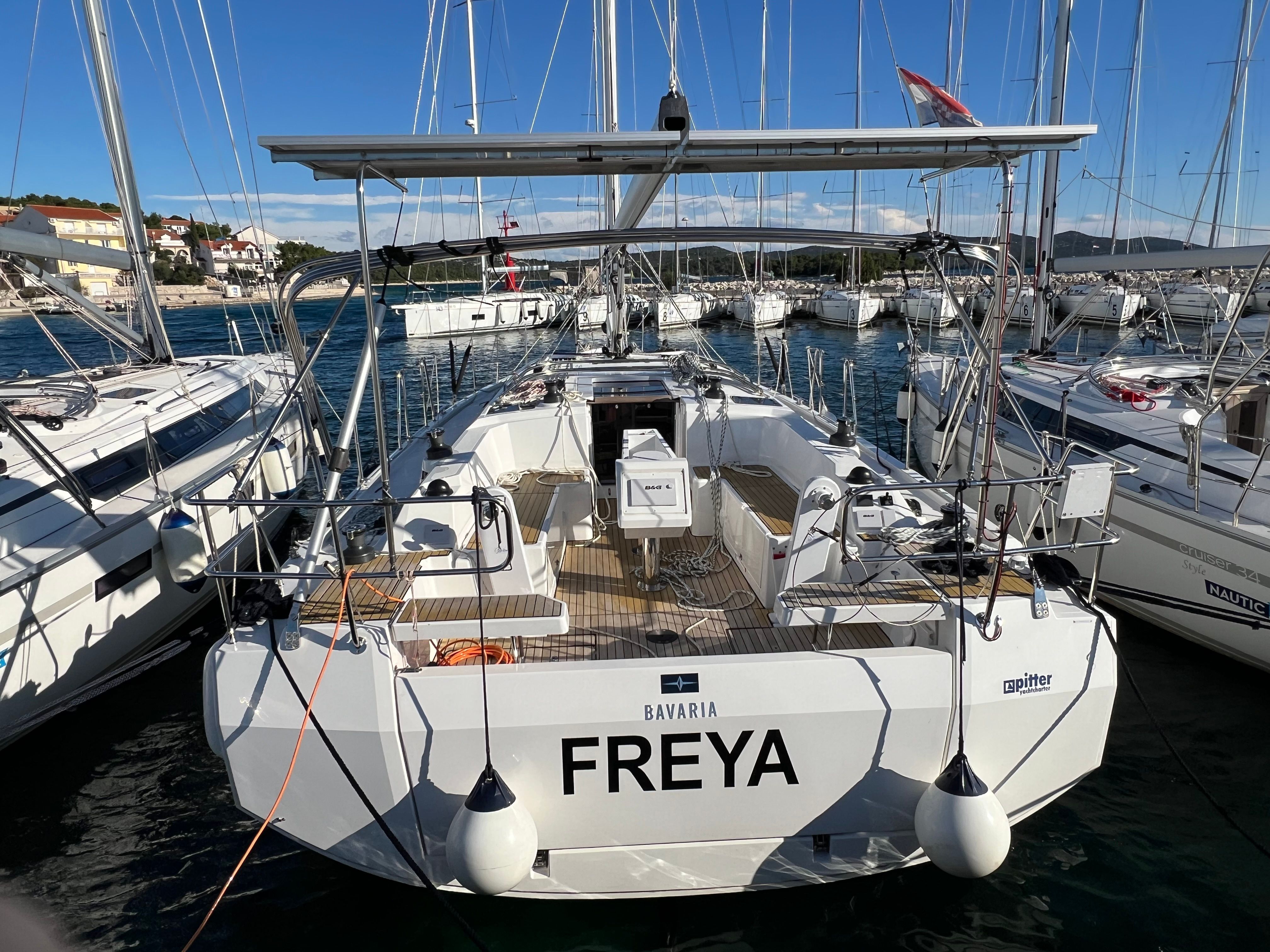 3-kabinska jadrnica Bavaria C38 - Freya je bila zgrajena leta 2024 in je zasidrana v marini Marina Pirovac, Hrvaška.