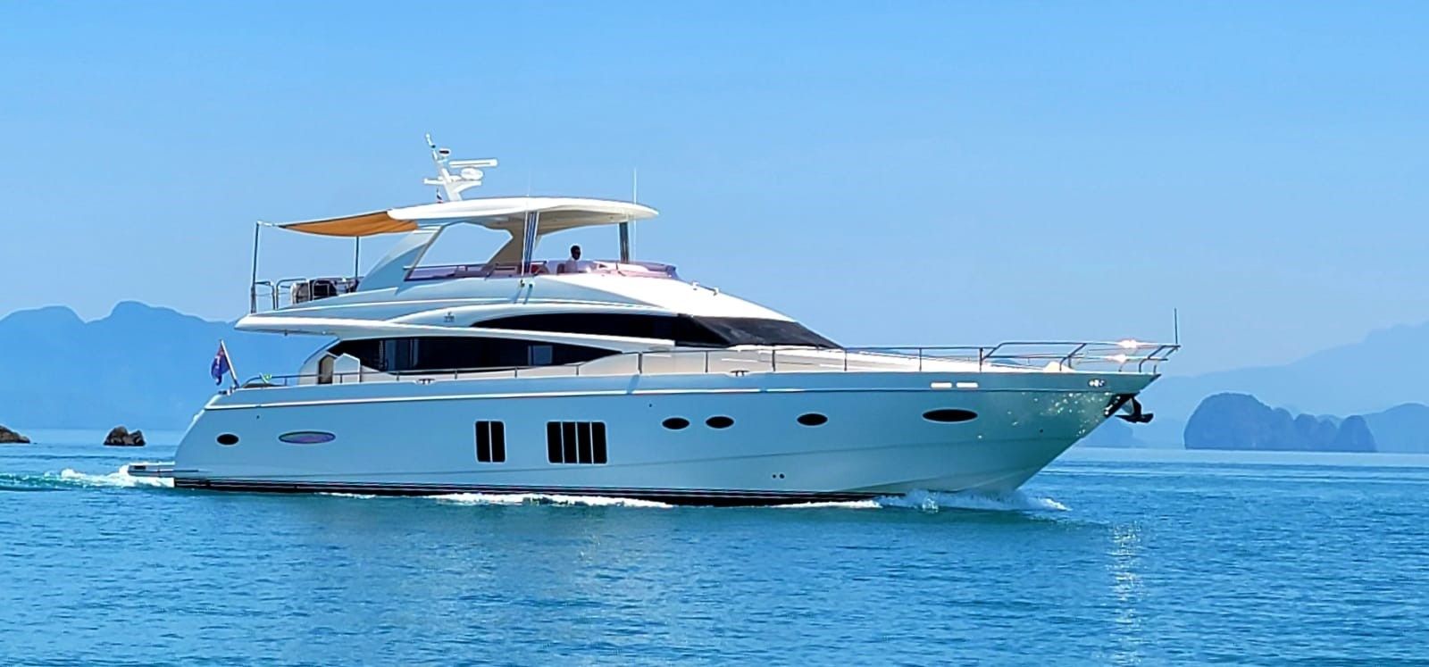 3-kabinska motorna jahta Leopard 27 Open - Moon Glider je bila zgrajena leta 2003 (obnovljena v 2019) in je zasidrana v marini Royal Phuket Marina, Tajska.