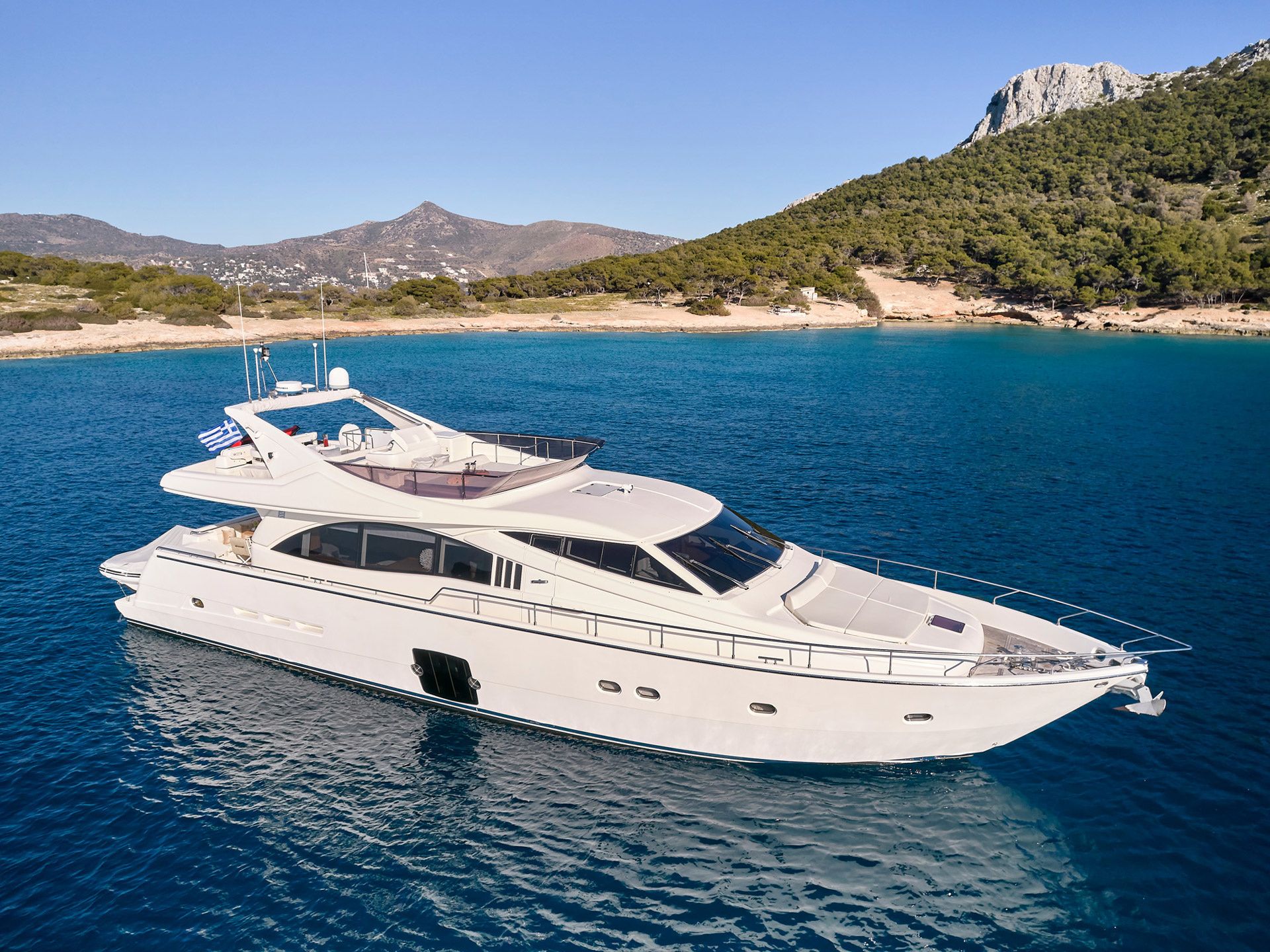 1-kabinska motorna jahta Sunseeker Apache 45 - Carpe Mare je bila zgrajena leta 1997 (obnovljena v 2022) in je zasidrana v marini Pachi Port, Grčija.