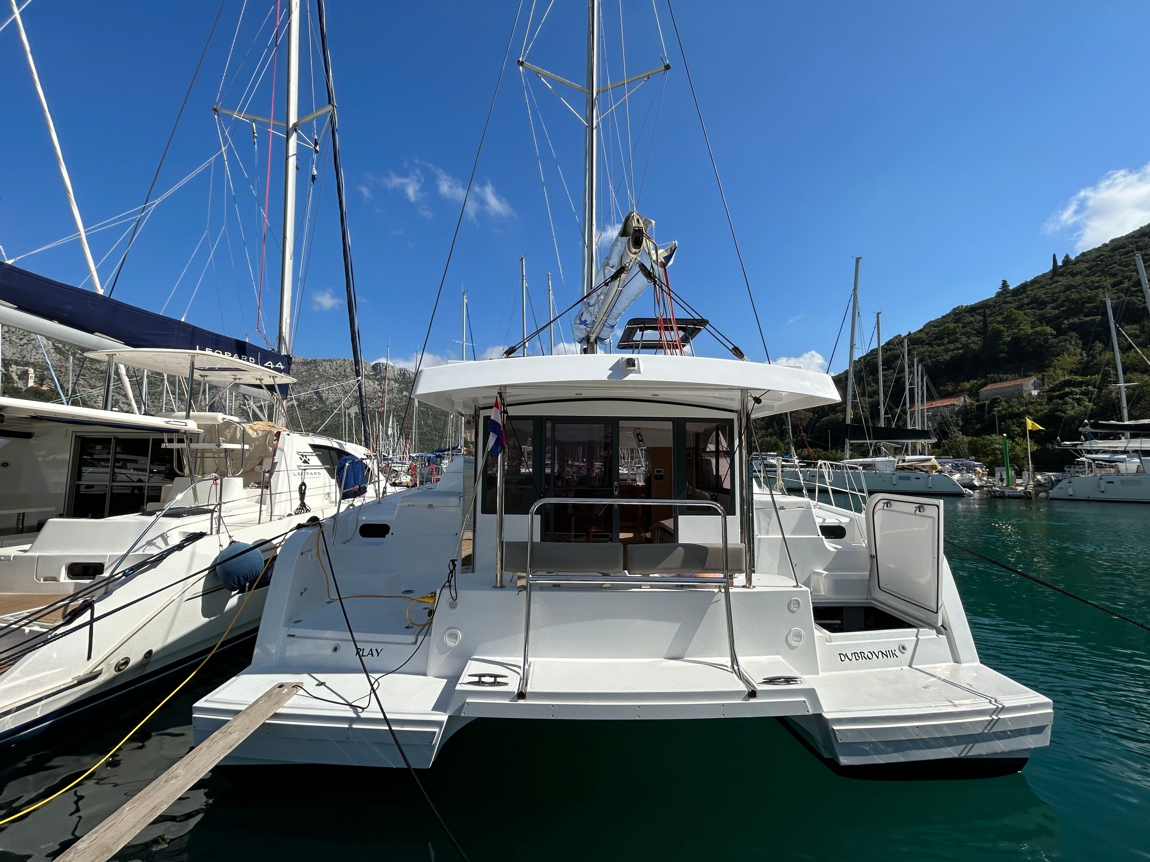 Katamaran Lagoon 42 - Jade sa 6 kabina, izgrađen je godine 2020, i usidren je u mestu ACI Marina Dubrovnik, Hrvatska.