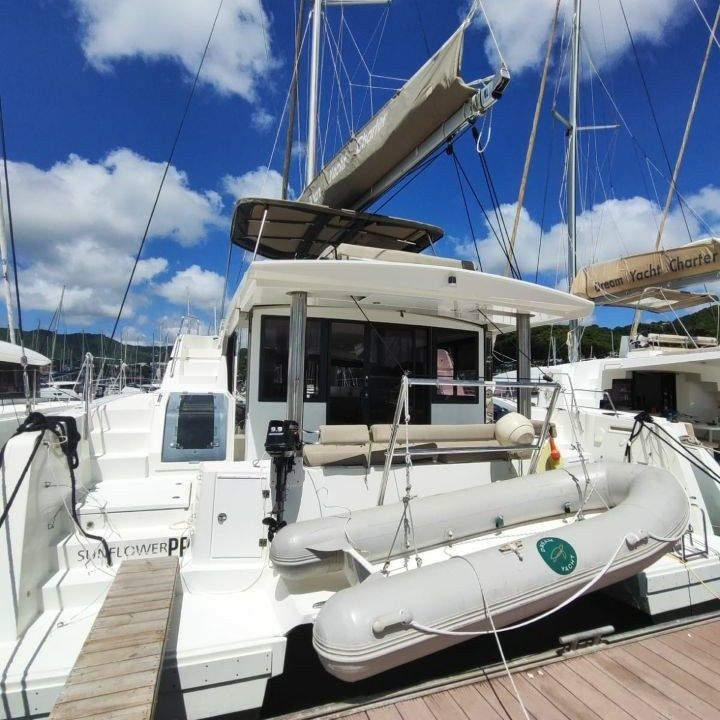 6 kamaralı Bali 4.8 - Sunflower katamaran 2024 yılında yapılmış, ve Marina du Marin, Karayipler kıyılarına bağlanmıştır.