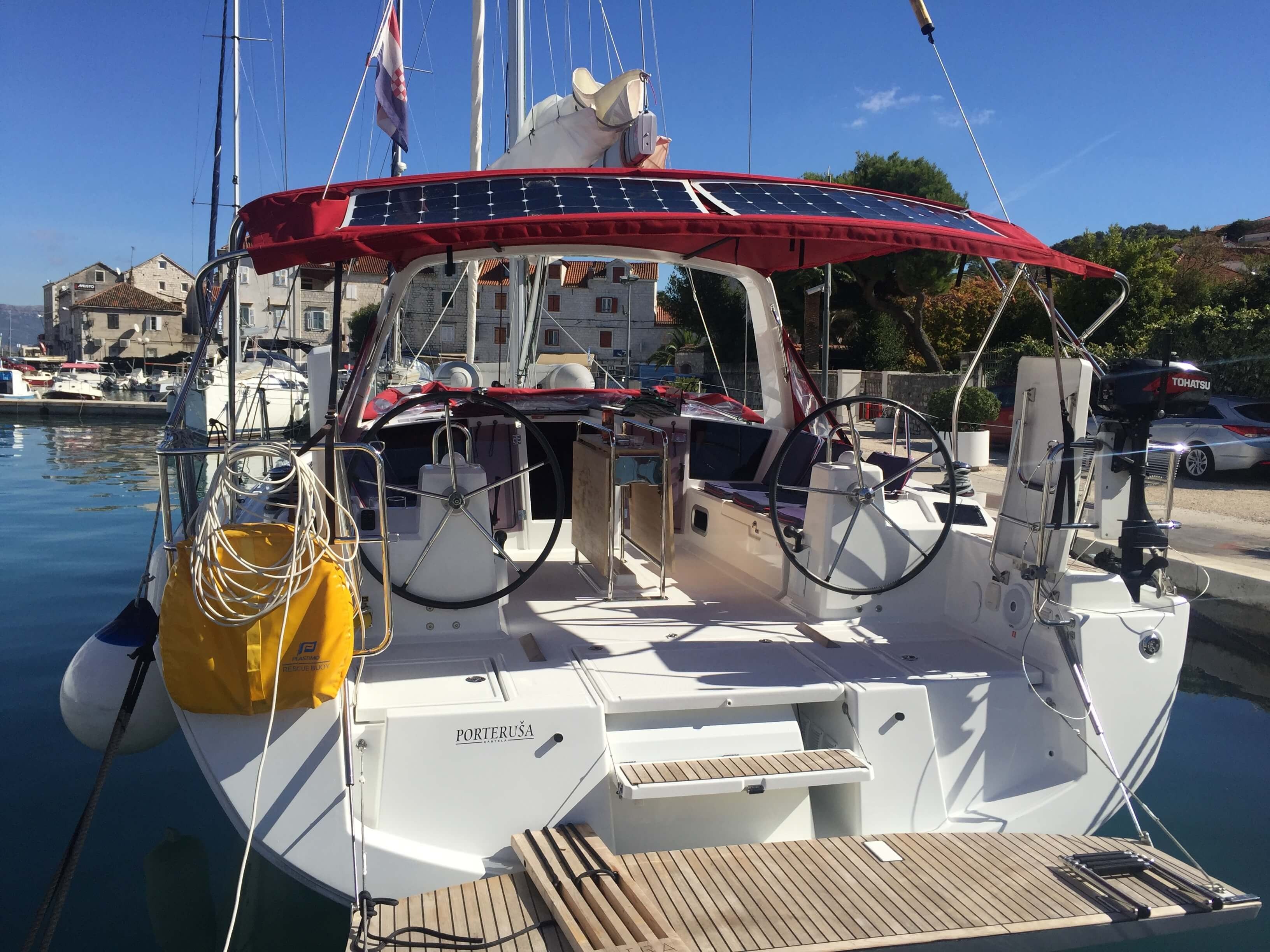 3 kamaralı Beneteau Oceanis 41.1 - Porterusa yelkenli yat 2016 yılında inşa edilmiş, ve ACI Marina Pomer, Hırvatistan kıyılarına bağlanmıştır.