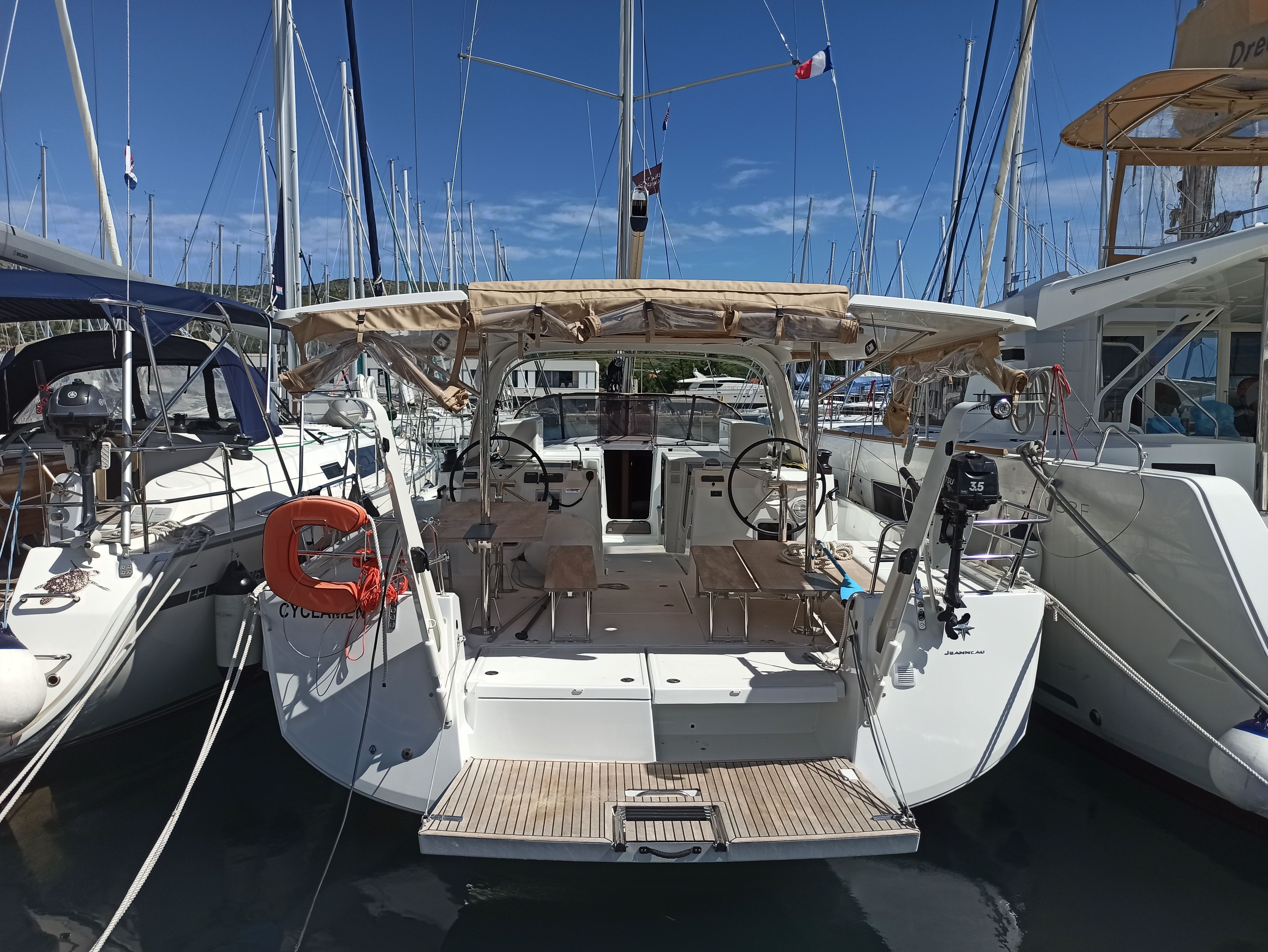 6 kamaralı Jeanneau Sun Loft 47 - Cyclamen yelkenli yat 2020 yılında inşa edilmiş, ve Marina Baotic, Hırvatistan kıyılarına bağlanmıştır.