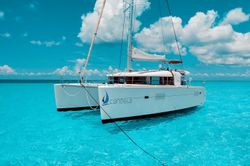 This catamaran is operated by the charter company Riviera Maya Catamarans.