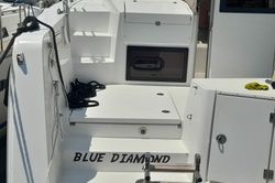 Boat equipment features a classic mainsail, a generator, a bimini and an outside GPS plotter. It also boasts a flat screen TV, heating, air conditioning, an audio system and outside speakers. The fully-equipped galley includes a microwave, an ice maker, a coffee machine, a fridge and an oven.