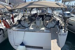 Boat equipment features a classic mainsail, solar panels, a bimini and a bow thruster. It also boasts an audio system and outside speakers. The fully-equipped galley includes a fridge, an oven, a cooker, a sink and kitchen utensils.