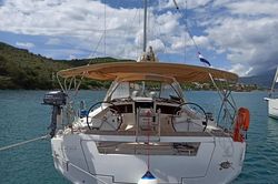 Boat equipment features a classic mainsail, electric winches, solar panels, a bimini and an outside GPS plotter. It also boasts an audio system, outside speakers and inside speakers. The fully-equipped galley includes a fridge, an oven, a cooker, a sink and kitchen utensils.