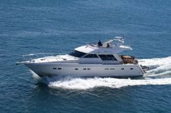 Boat equipment features a bimini and a bow thruster. It also boasts heating, air conditioning, an audio system, outside speakers and inside speakers. The fully-equipped galley includes a fridge, a cooker, a sink and kitchen utensils.