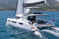 Boat equipment features a classic mainsail, solar panels, a generator, a bimini and an outside GPS plotter. It also boasts a flat screen TV, heating, air conditioning, a washing machine and an audio system. The fully-equipped galley includes a microwave, a dishwasher, an ice maker, a freezer and a coffee machine.