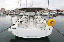 Boat equipment features a rolling mainsail, a bimini and a bow thruster. It also boasts heating, air conditioning, an audio system, outside speakers and inside speakers. The fully-equipped galley includes a fridge, an oven, a cooker, a sink and kitchen utensils.